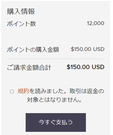 この場合、12,000ポイントは150ドルするね。(1ドル110円で計算すると16,500円)
