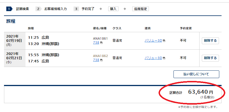 例えばこの時期(2021.7月)、僕の住む広島から那覇に行こうとすると