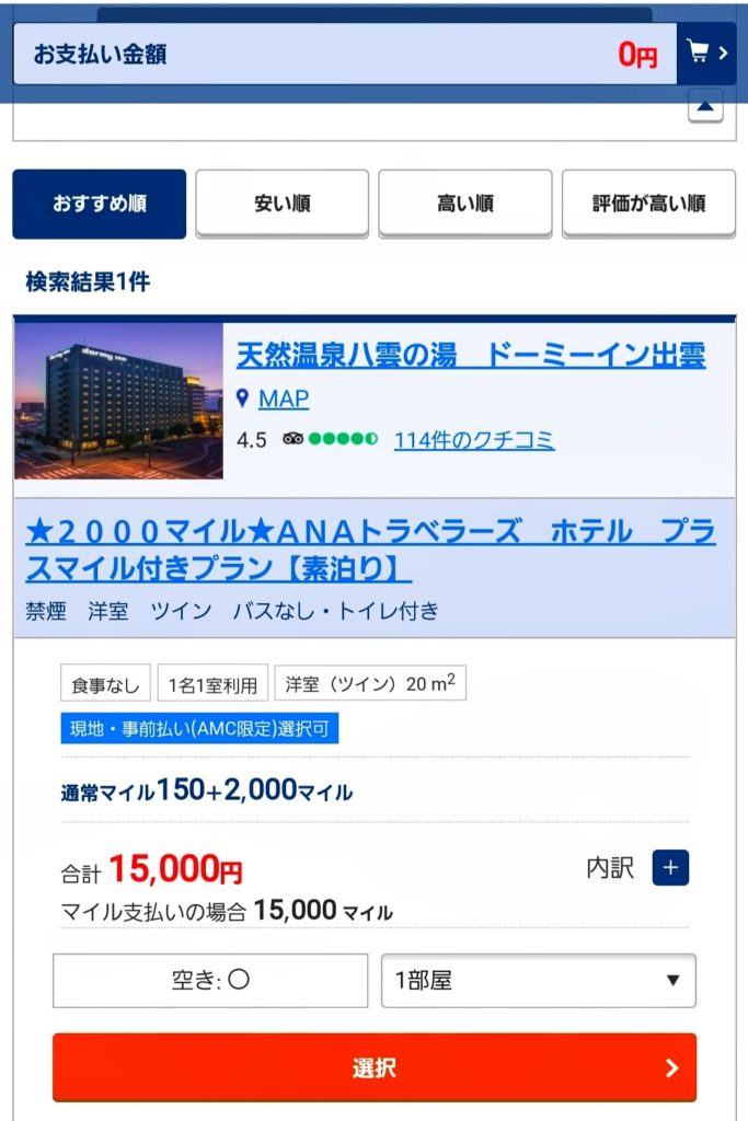 急遽、出雲に旅❗実質無料でホテルを予約❗
