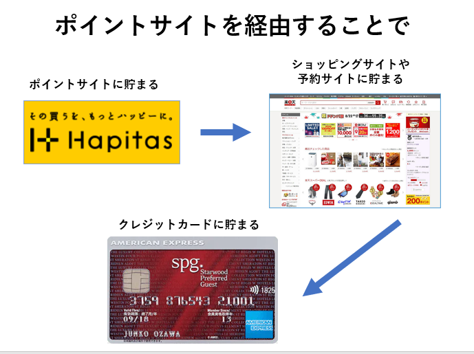 ハピタスを経由して、それぞれのサイトで予約や買い物をするってことだよ❗💕